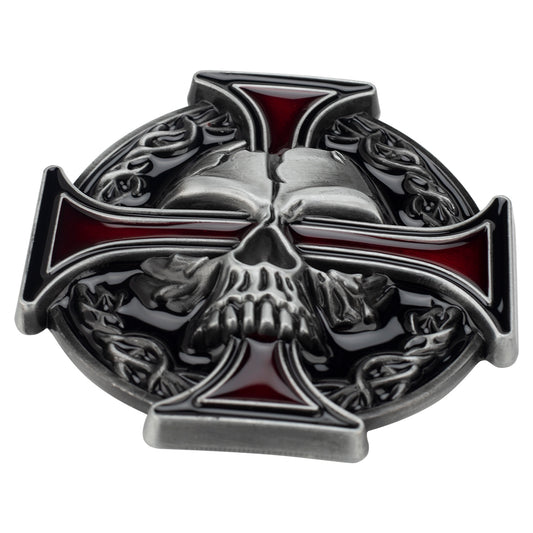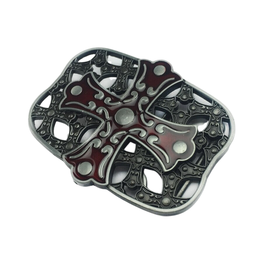 COCKY Belt Buckle with Red Enamel and Pewter Finish