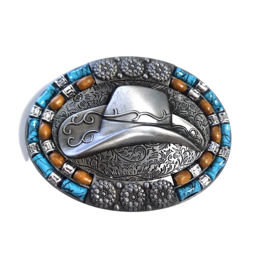 Vintage Bohemian Style Silver Color Cowboy Hat Belt Buckle