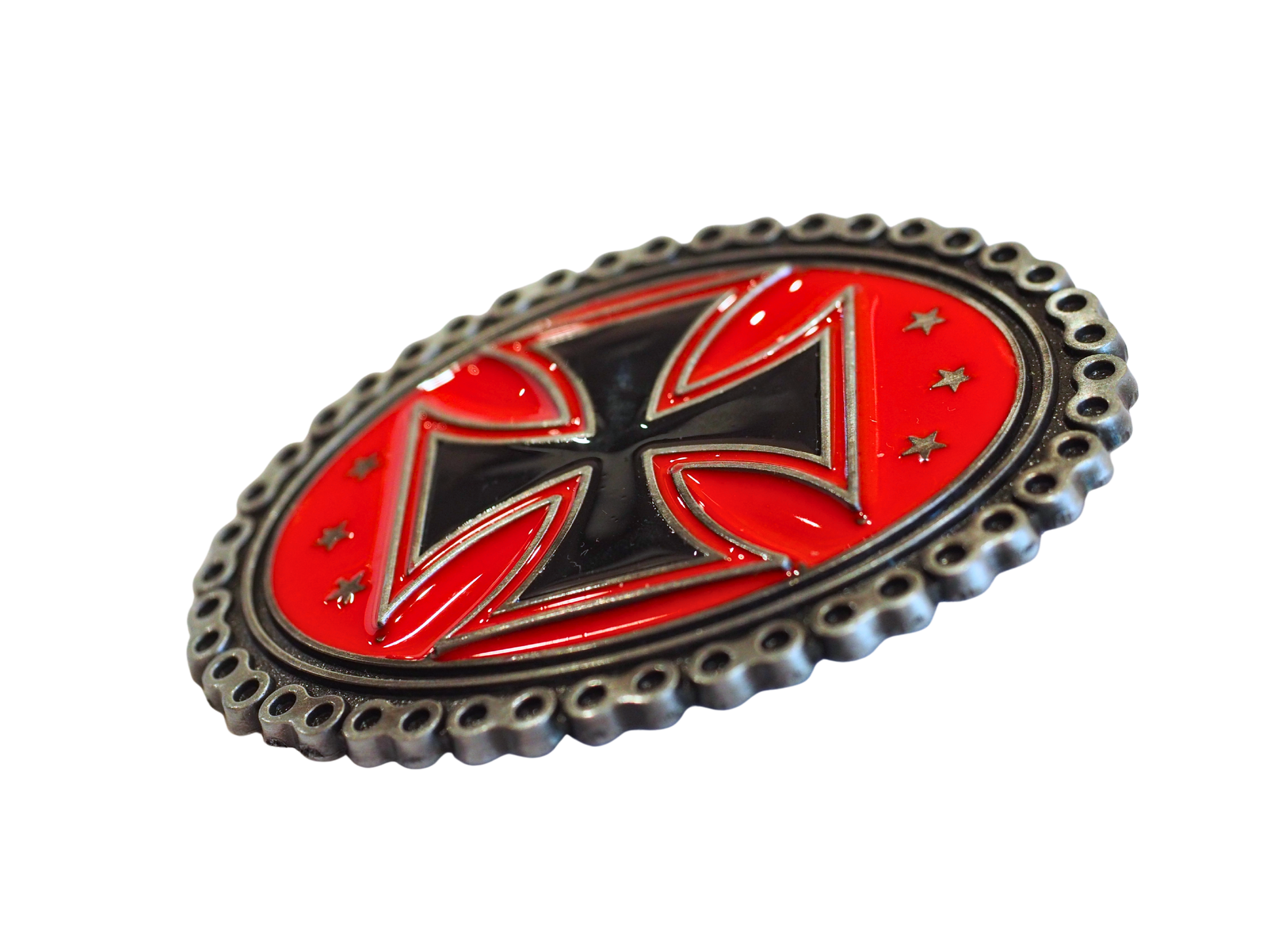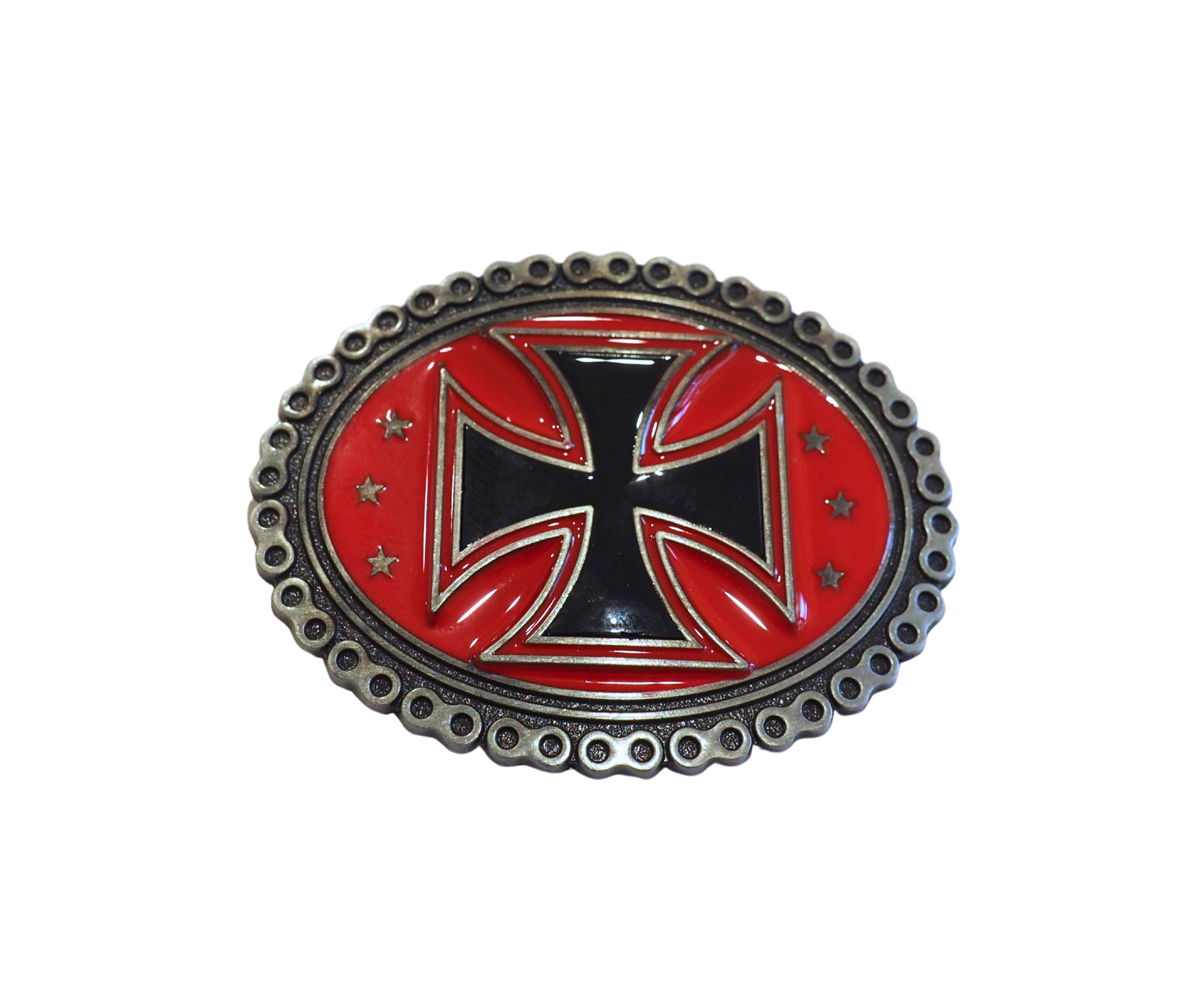 Iron Cross Stars Belt Buckle – Red & Black Enamel Finish