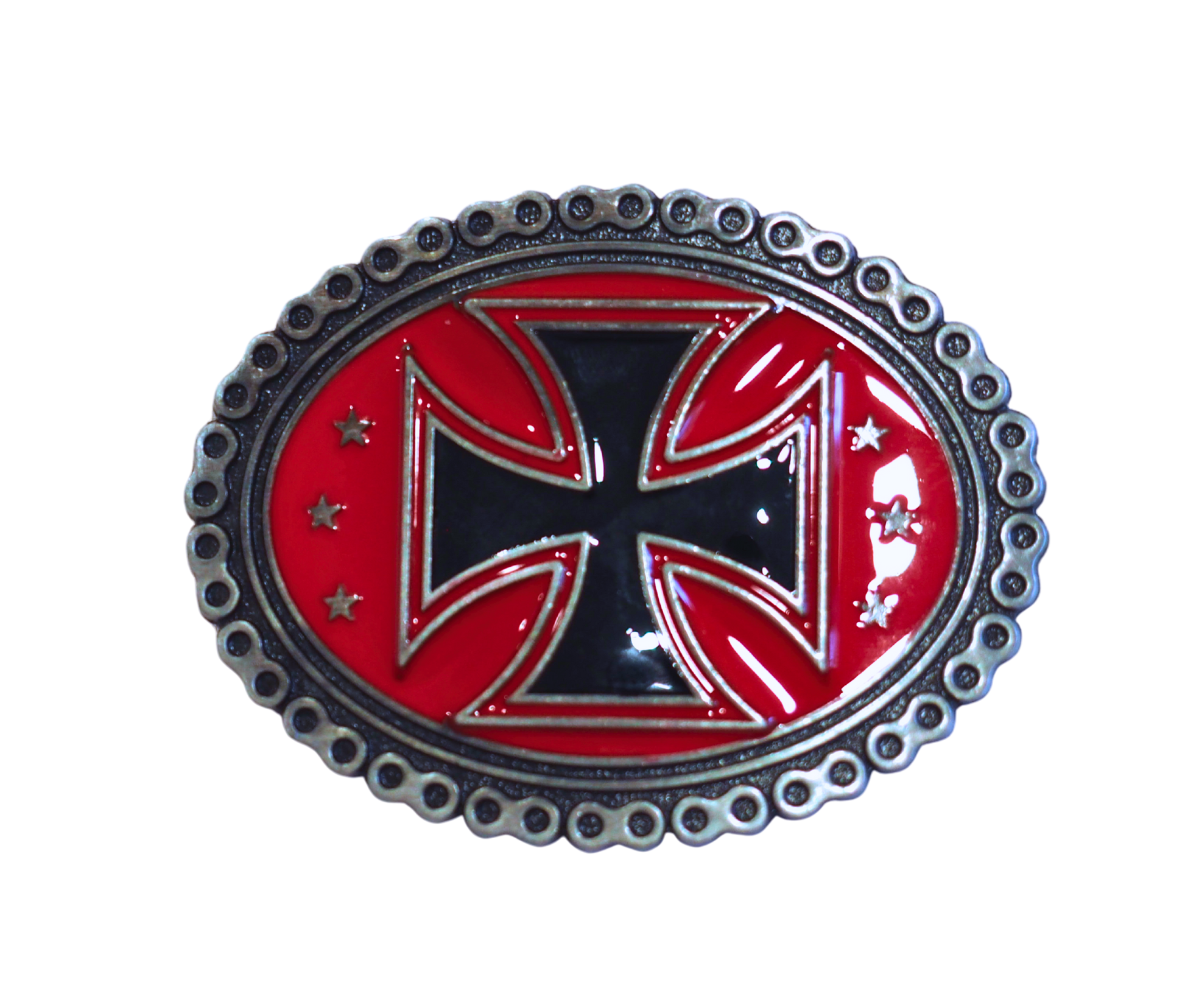 Strong lines. Classic attitude. The Iron Cross Stars Belt Buckle brings together old-school style and modern craftsmanship. With its bold black cross set against a deep red enamel background and surrounded by shining silver stars, this buckle makes a statement that never fades.