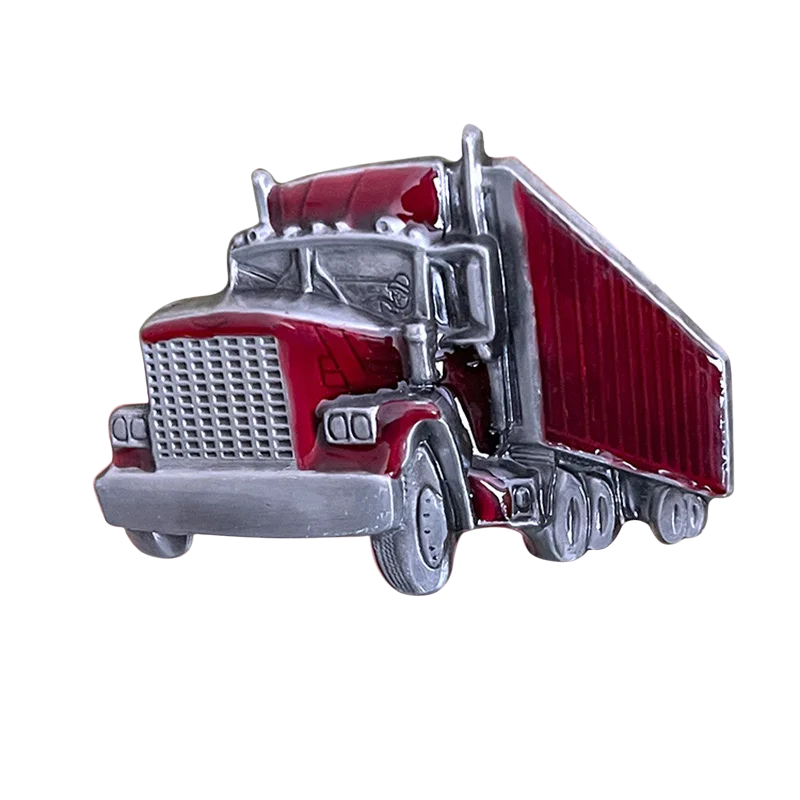 Turn heads with this bold Western-style belt buckle featuring a classic long-nose semi-truck in deep red enamel with antique silver-tone detailing. Cast in durable zinc alloy, it’s a statement piece built for truckies, rig lovers, and collectors who appreciate big-road heritage and rugged style.